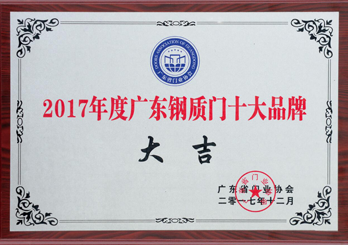 獲得廣東省門業協會的“廣東鋼質門十大品牌稱號”